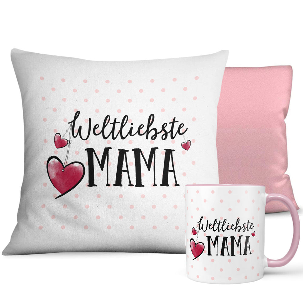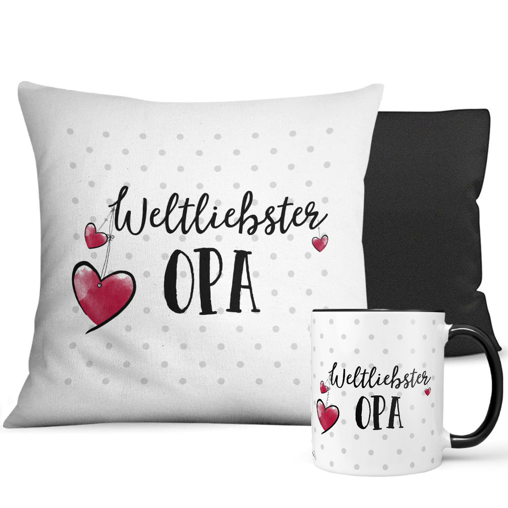 Geschenk Papa Kissen Tasse – Weltliebster Papa Set mit Herzmotiv