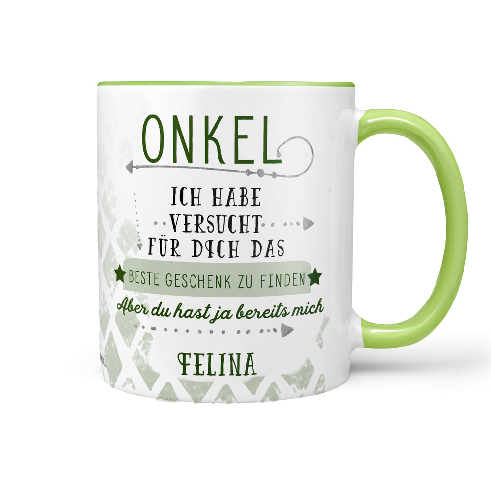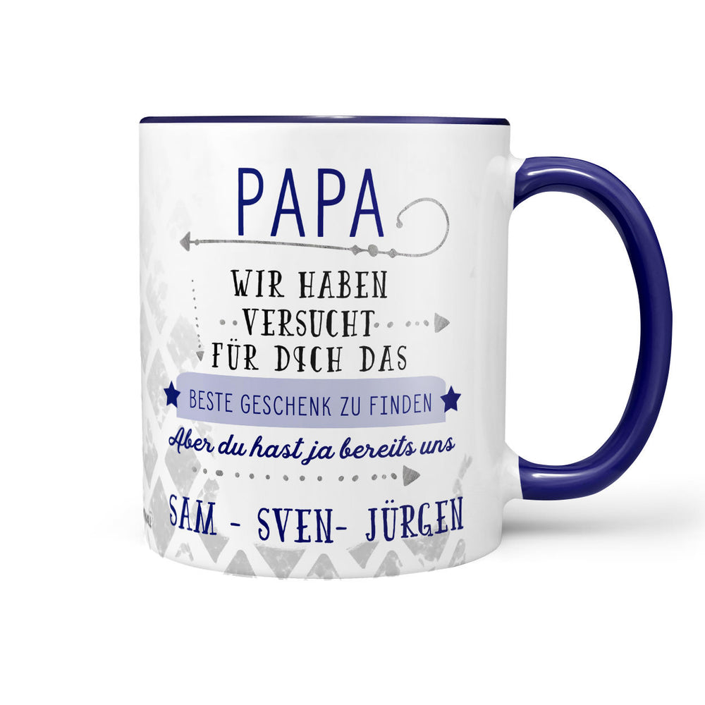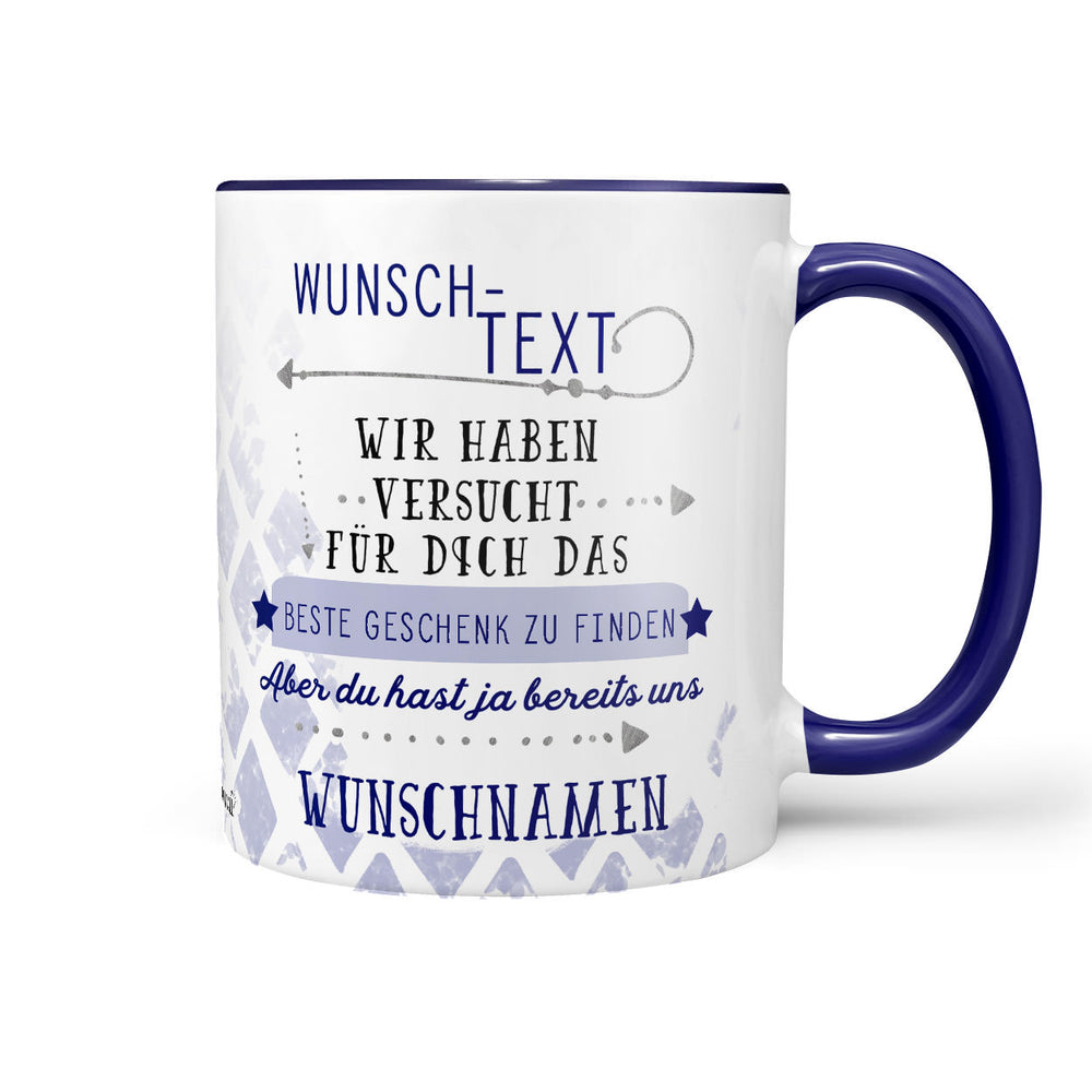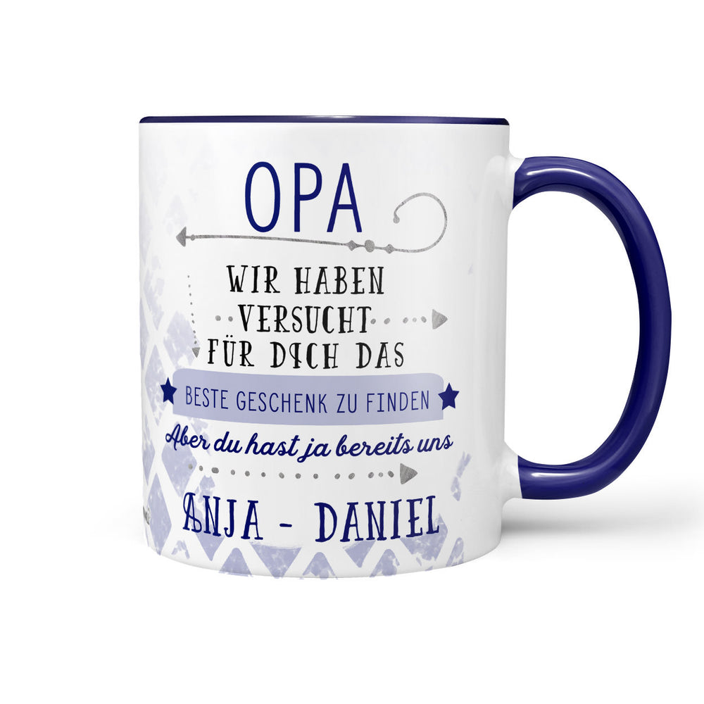Unsere personalisierte Tasse Geschenk für Oma ist ein liebevolles Präsent, das direkt ins Herz trifft. Mit dem schönen Spruch „Wir haben versucht für dich das beste Geschenk zu finden – aber du hast ja bereits uns“ und den frei wählbaren Wunschnamen wird sie zu einem Erinnerungsstück, das täglich Freude bereitet.