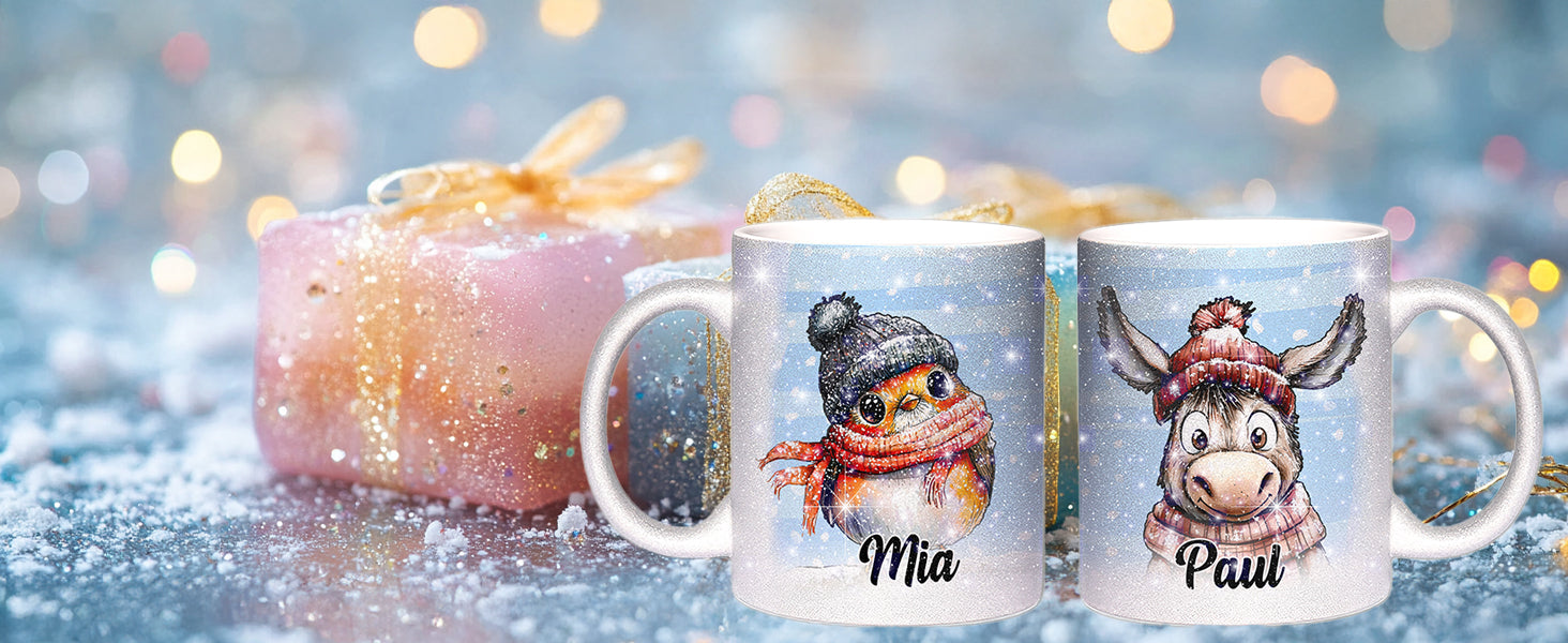 Personalisierte Weihnachtstasse mit Glitzer – festlich und einzigartig