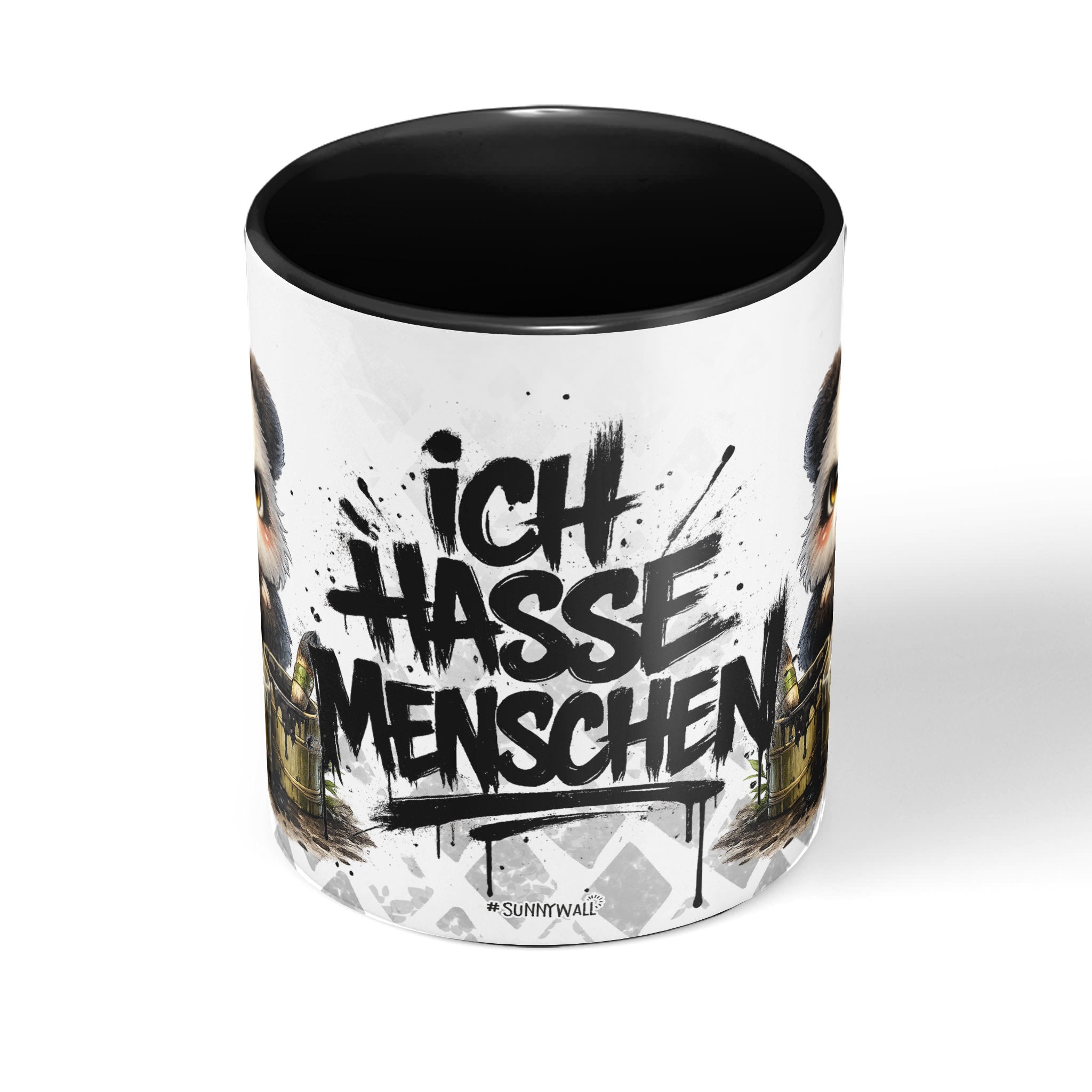 Mit schwarzem Henkel und schwarzer Innenseite – sorgt für einen starken Kontrast zum Motiv.