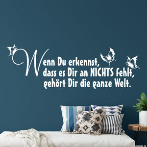 Wandtattoo Zitat Welt – Wenn du erkennst dass es dir an nichts fehlt